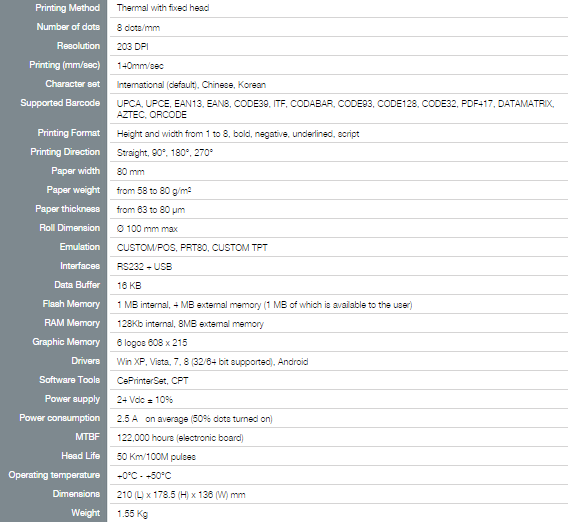SOFTWARE CePrinterSet : to update logos, edit characters, set operating parameters and update the printer firmware. It allows you to create a file including the different SW customizations and send them to the printer via the interface provided, for easy and fast setting